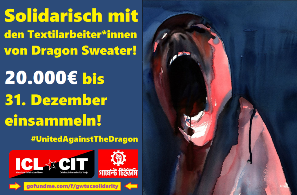 Solidarisch mit den ehemaligen Textilarbeiter*innen von Dragon Sweater und gegen den Konsumwahn!