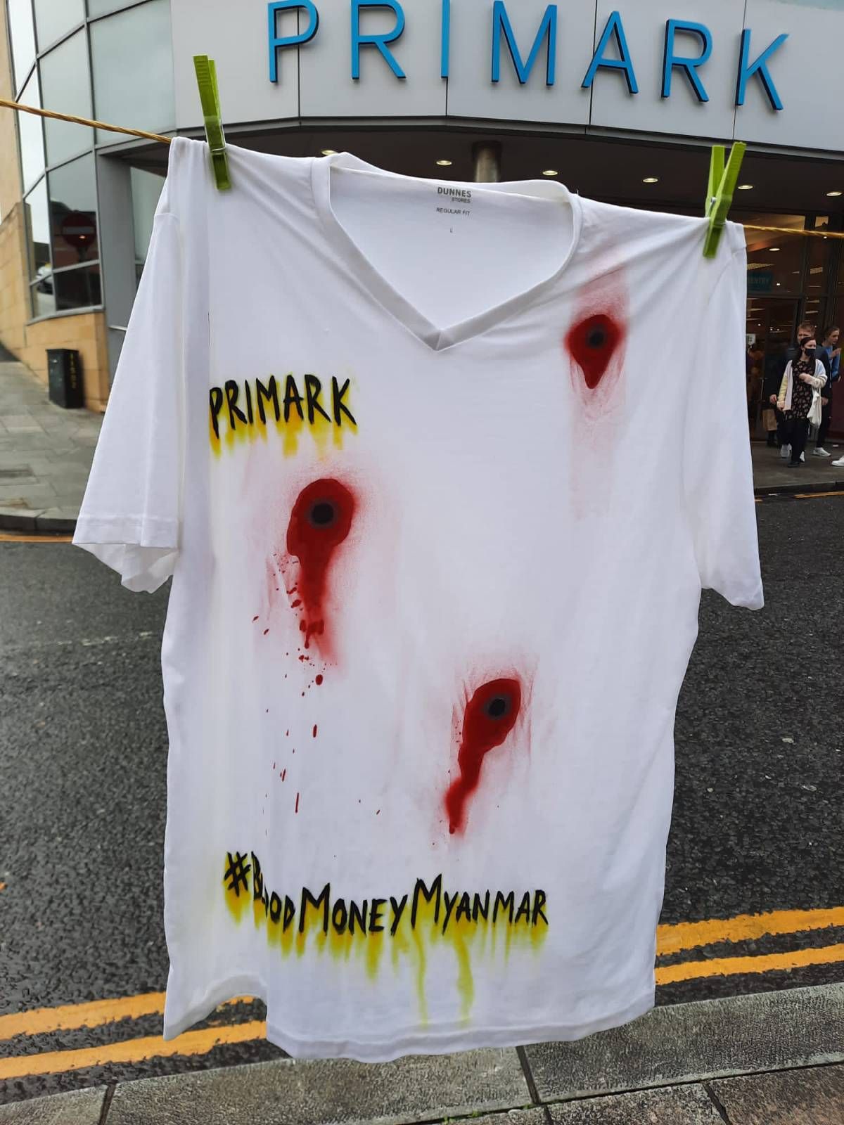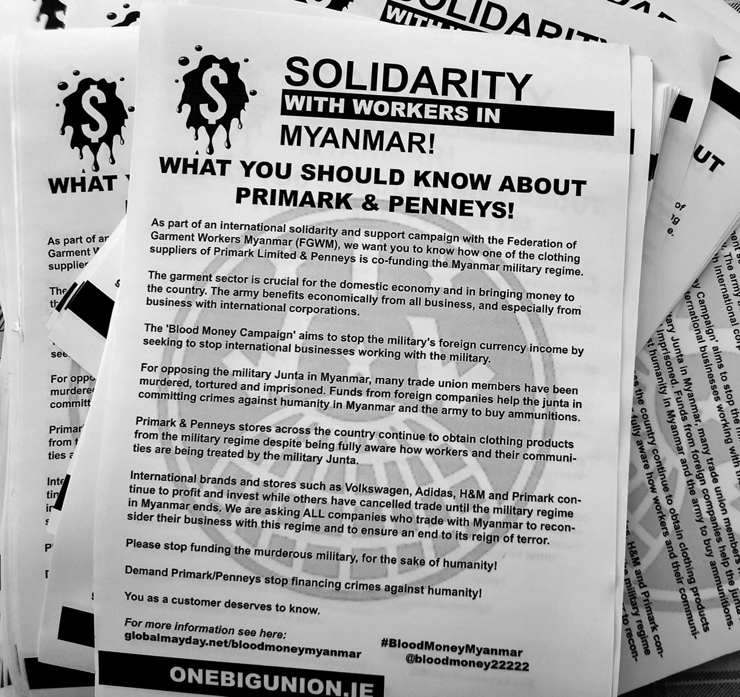 Um der Militärjunta die Finanzquellen abzuschnüren, haben Akteur*innen der Zivilgesellschaft sowie die FGWM die Blood Money Campaign initiiert. Mit dieser sollen Unternehmen, die weiterhin in dem Land Geschäfte betreiben und somit auf direkte oder indirekte Weise das Militär finanziell unterstützen, unter Druck gesetzt werden, ihre Investitionen abzuziehen. Neben Firmen wie der Deutsche Post DHL Group, Primark, H&M und Volkswagen, gehört auch Adidas dazu.
