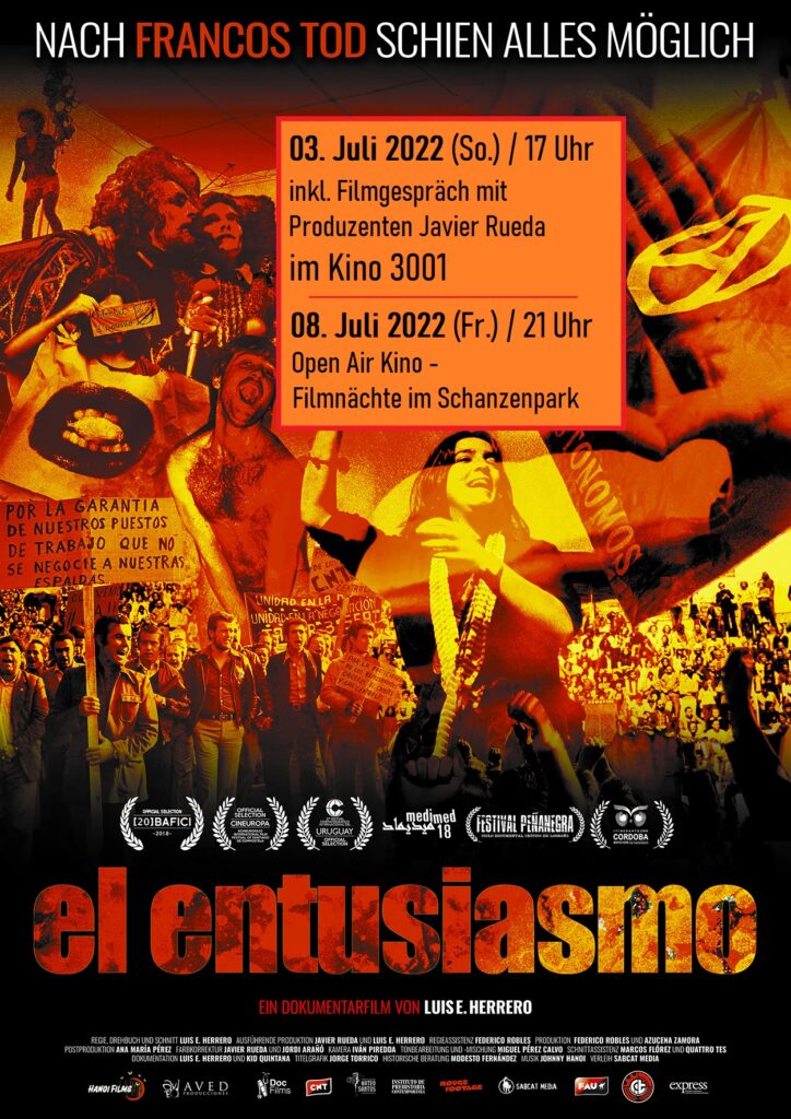 1975 starb Europas letzter faschistischer Diktator: Francisco Franco. Sein Tod machte in Spanien den Weg frei für eine aufbegehrende Jugend, die vieles nachzuholen hatte. Aber auch die exilierten Kämpfer:innen aus dem Spanischen Bürgerkrieg kehrten zurück. In dieser Phase der sogenannten Transición, dem Übergang von der Diktatur zur bürgerlichen Demokratie, schien alles möglich – selbst der Traum, die Revolution von 1936 zu beenden. Der Film legt den Fokus auf Francos erbittertsten Gegner: die Anarchist:innen und Syndikalist:innen. Ihre Organisation, die Gewerkschaft Confederación Nacional del Trabajo (CNT), bis zum Sieg Francos ein entscheidender Faktor in der spanischen Gesellschaft, erlebte eine Renaissance. In nur zwei Jahren wurde aus einer klandestinen Untergrund-Organisation wieder eine Massenbewegung. Sie organisierte Versammlungen mit hunderttausenden Teilnehmer:innen, Libertäre Tage, Streiks und Widerstand gegen den neuen liberalen Kapitalismus. Schnell zerrieb sich dieser Aufbruch allerdings nicht nur in internen Konflikten, sondern wurde auch massiv durch geheimdienstliche Interventionen sabotiert. »El Entusiasmo« ist auch die Geschichte einer Niederlage.