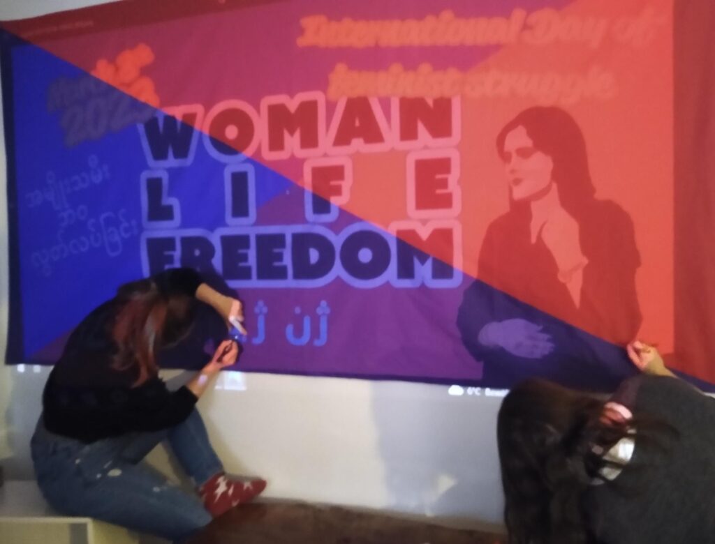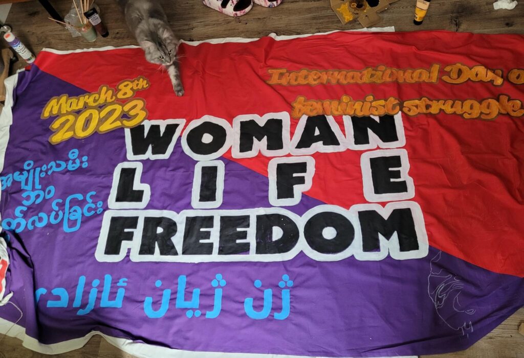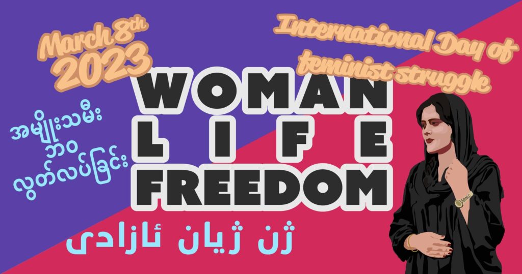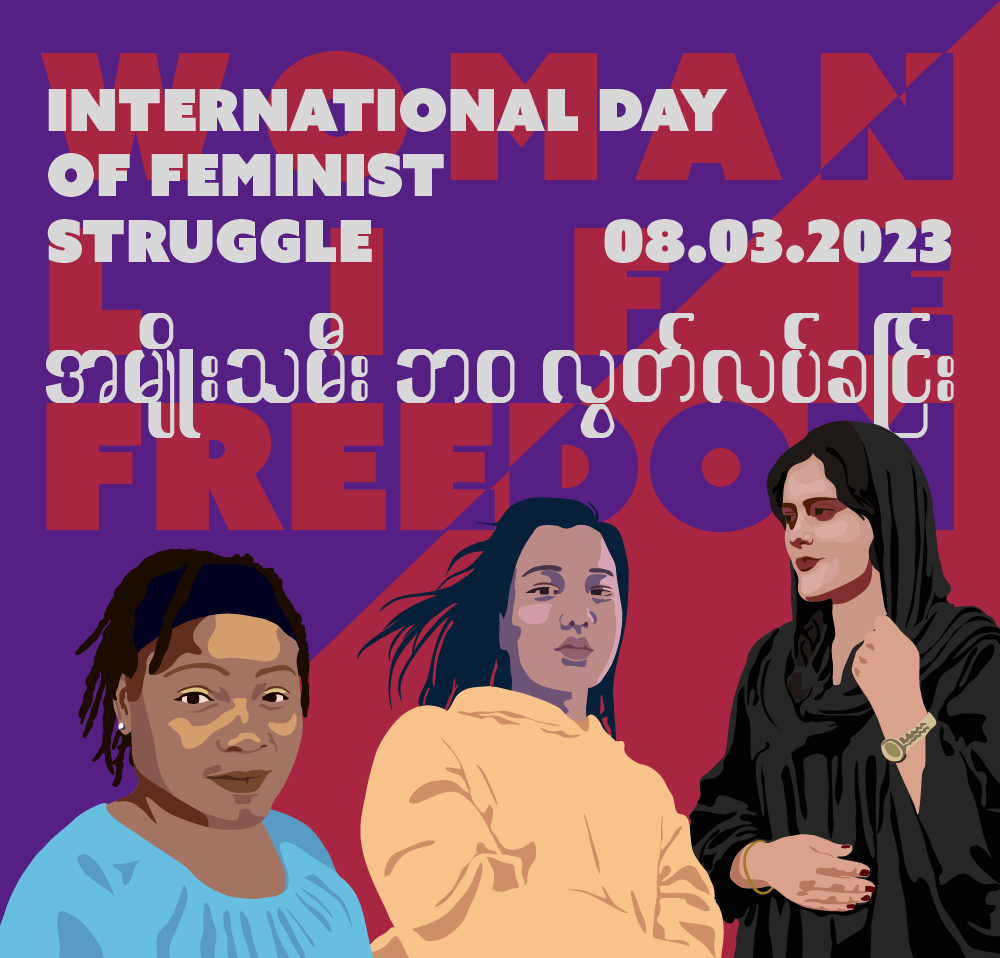 Kommt dazu! Es wird feministische Musik und Redebeiträge aus unterschiedlichen Teilen der Erde geben. Diese Aktion findet vernetzt mit Genoss*innen in Bristol, Myanmar und dem Iran statt.