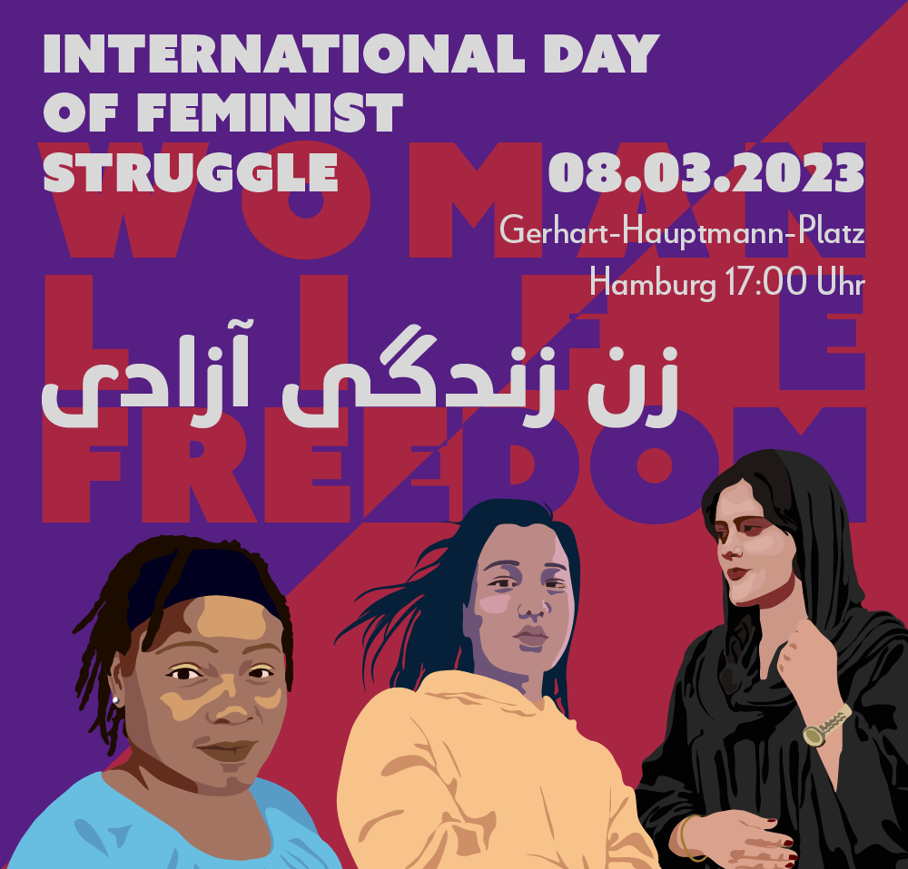 Wir unterstützen die Initiative zu einer Kundgebung, die versucht die globalen Auswüchse des Patriarchats sowie die Kämpfe dagegen in den Fokus zu stellen. Organisiert wird diese von Einzelpersonen aus der FAU Hamburg, IWW Hamburg sowie aus dem Iran geflüchteten Frauen.