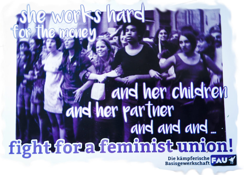 Niedrigere Löhne, Schikanen oder sexuelle Belästigung sind Teil der ausbeuterischen Arbeitsbedingungen und Formen der Diskriminierung von Frauen*, die sie nicht nur am Arbeitsplatz erfahren. So übernehmen Frauen* im Privaten die tradierte, ihrem Geschlecht zugeschriebene Rolle, was für sie unbezahlte Fürsorge-, Haushalts- und Erziehungsarbeit bedeutet.