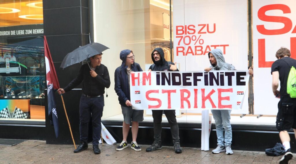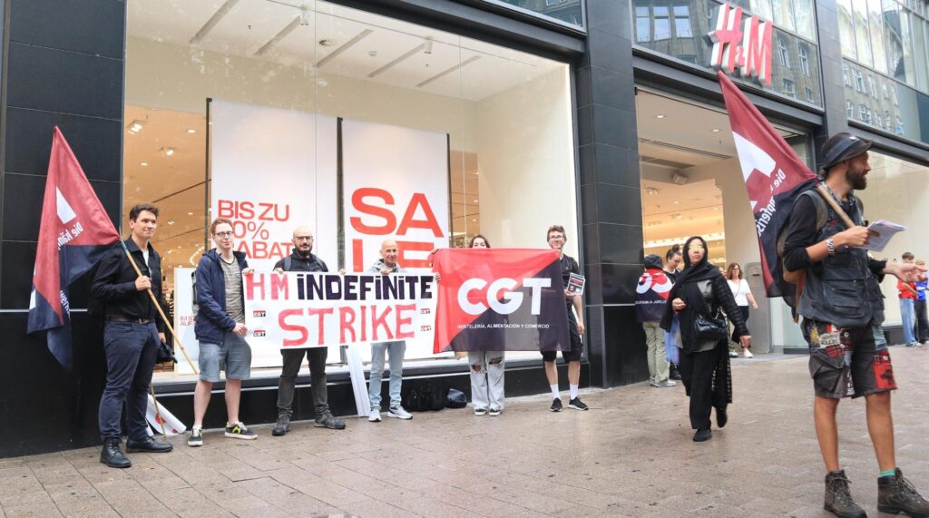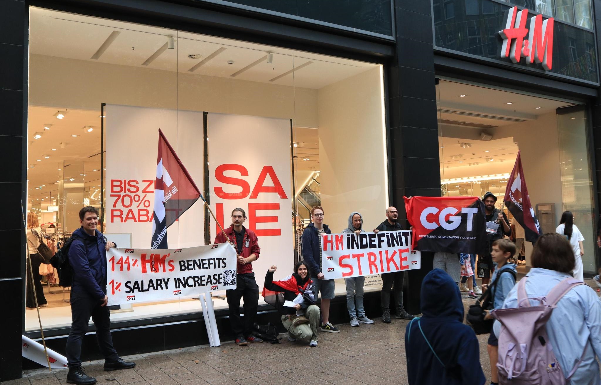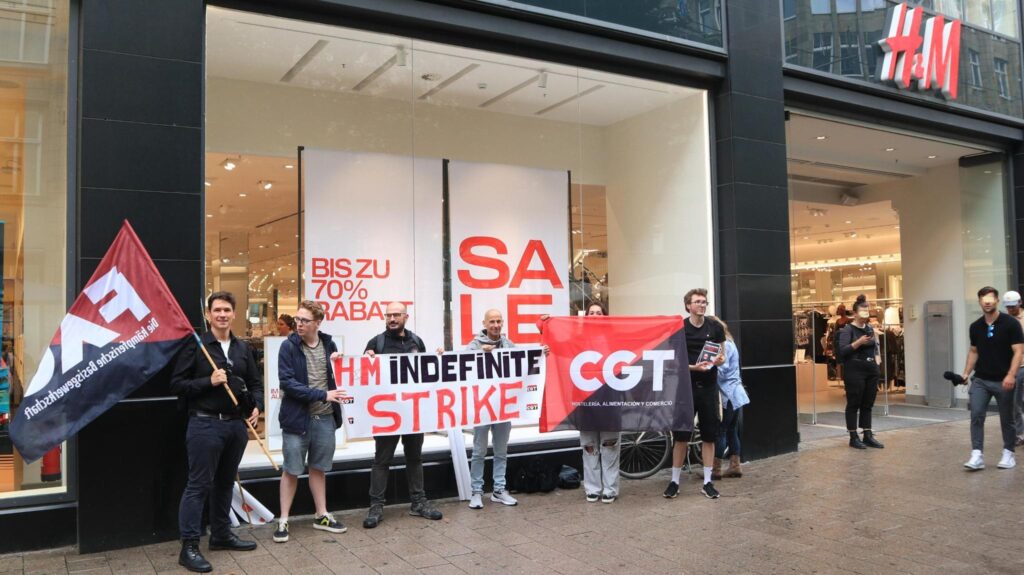 Alle kennen H&M, aber nur Wenige reden über die Arbeitsbedingungen in dem Konzern. Diesmal geht es nicht um die Näher*innen in den Fabriken Asiens oder Afrikas, sondern um das H&M Kundenzentrum in Barcelona. Bereits seit dem 25. April 2024, also mehr als 90 Tagen, befindet sich dort etwa die Hälfte der 200 Lohnabhängigen in einem unbefristeten Streik. Ein Großteil der Belegschaft ist in der anarchosyndikalistischen Confederación General del Trabajo (CGT) organisiert, somit läuft auch der Streik über die CGT. Hauptauslöser des Arbeitskampfes ist die aggressive Digitalisierungspolitik des Konzerns, worunter die Lohnabhängigen zunehmend leiden, während H&M Rekordgewinne einstreicht. Allein in den letzten 12 Monaten wurde die Belegschaft von 270 auf 200 Personen reduziert. Der computergestützte Algorithmus erhöht den Leistungsdruck und macht die Betroffenen zunehmend krank. Aber lest selbst, was die CGT dazu schreibt in ihrem Flyer.
